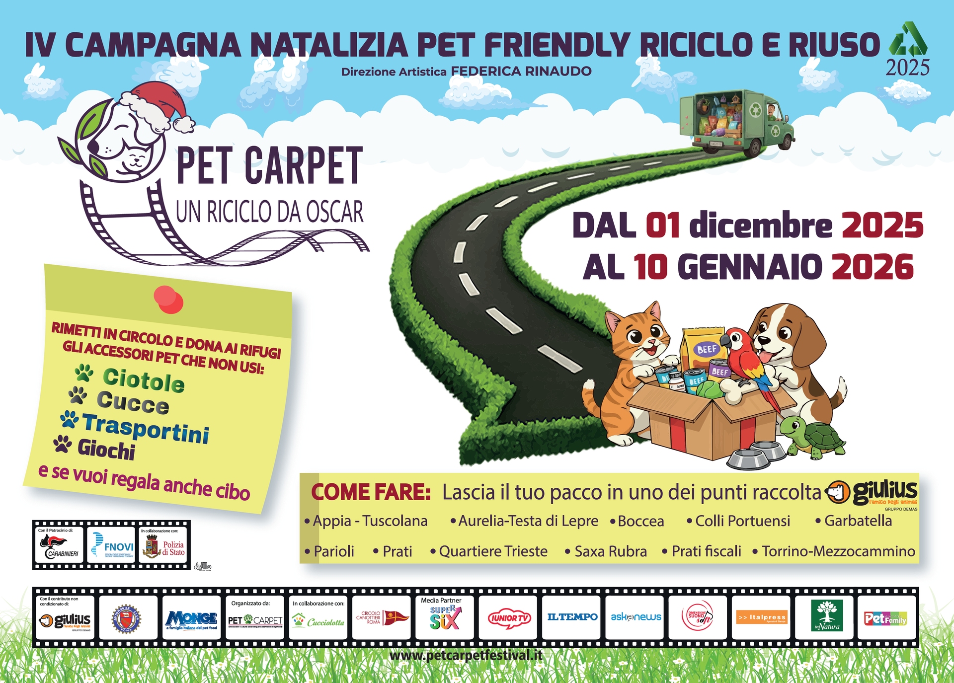 Quante ciotole, cucce, trasportini dimenticati ci sono in casa? Sono perfetti, ma non li utilizziamo più perché magari i nostri cuccioli sono diventati adulti, oppure perché i nostri animali del cuore, purtroppo, sono volati sul Ponte dell’Arcobaleno. In questo caso, il dolore può trasformarsi in un gesto d’amore. Ci sono, infatti, cani e gatti che non hanno mai ricevuto il calore di una famiglia e vivono nei rifugi circondati dalle cure e dall’affetto dei volontari, che hanno necessità di aiuto e sostegno dalle piccole alle grandi cose. E allora per le festività di Natale rimetti in circolo l’amore e partecipa alla campagna ecosolidale pet – friendly: “Pet Carpet: Un riciclo da Oscar” , con il patrocinio dell’Arma dei Carabinieri, della Fnovi e in collaborazione con la Polizia di Stato. L’evento, organizzato dalla Associazione Pet Carpet con la sua fondatrice la giornalista Federica Rinaudo, nasce proprio con lo scopo di riciclare e riusare gli accessori pet per permettere di trasformare il superfluo in essenziale, ridurre gli sprechi e moltiplicare l’amore. Per questo ogni anno la campagna sostenibile raccoglie, attraverso i suoi punti raccolta, tantissimi oggetti e anche scorte di alimenti che vengono poi consegnati alle associazioni e ai rifugi.