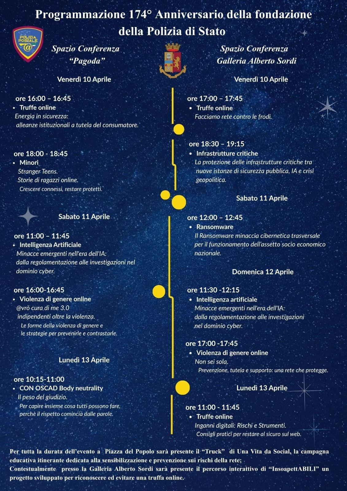 Venerdì 10 aprile verrà celebrato su tutto il territorio nazionale il 174° Anniversario della Fondazione della Polizia di Stato.